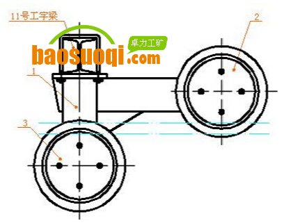 2.1 托繩部分主要由吊架1、托繩輪2、U型螺栓3組成。(圖4)